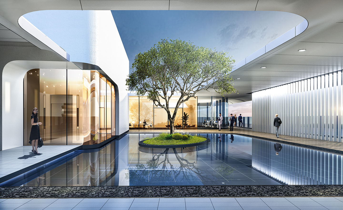 能量魔方從地面蔓延到建筑平臺,從平臺生長到屋頂,一系列混合的、靈活的、漸進式的公共產物模糊了建筑與景觀的邊界,以無限的生命力聯系著各類功能空間,一場視覺的盛宴,展現著燕麥科技強大的生命力,以及助力實現中國智造強國夢。