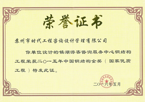 (2016-5-19) 企業動態--我司設計的《鎮湖游客咨詢服務中心鋼結構工程》項目獲評“中國鋼結構金獎”