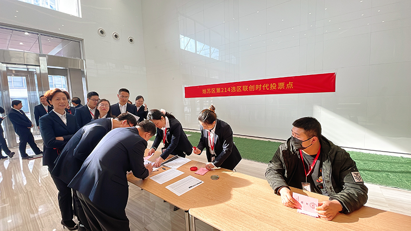 2021年12月8日為姑蘇區人大代表的選舉日。初冬已是寒意襲人,而公司一樓大廳卻都是一派莊嚴熱烈的場面。上午九點半,在公司選民的見證下,工作人員拆開裝有選票的信封,并分發選票。拿到選票后,每位選民都本著公平、公正的態度認真填寫,然后走到投票箱前鄭重投下自己莊嚴而神圣的一票。最后,工作人員把投票箱貼好封條,及時送到了蘇州工業園區人大工委。