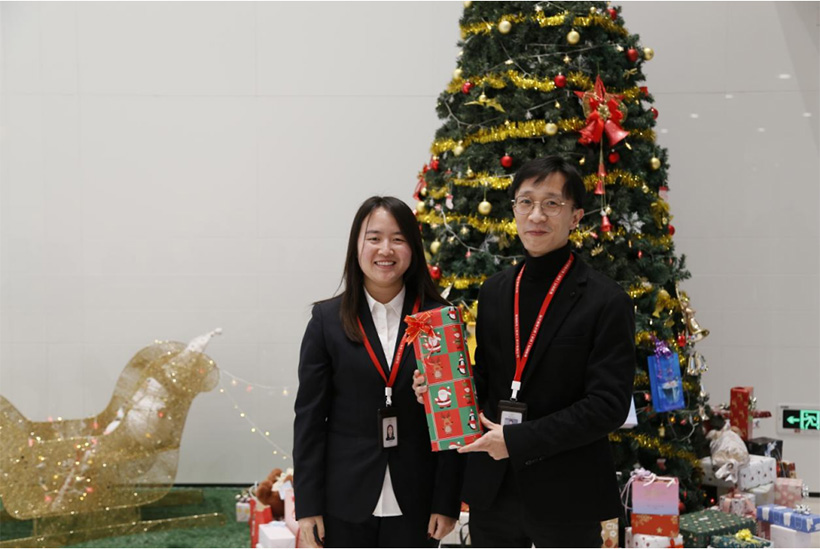 團拜會后,我們舉行了因疫情而遲來的圣誕禮物互換活動。活動前,各位員工精心挑選了互贈同事的禮物,既有衣服配飾,又有文創產品等等,這些禮物蘊含了大家的溫暖關心和美好祝愿。在給禮物貼上抽獎代號后,員工們在歡笑喜樂的氣氛中各自抽取禮物。禮物互換,傳遞的不僅僅是一份禮物,更是員工們之間深深的情意。大家紛紛許下美好的新年愿望,用相機手機拍下歡樂場景,留下美好回憶。