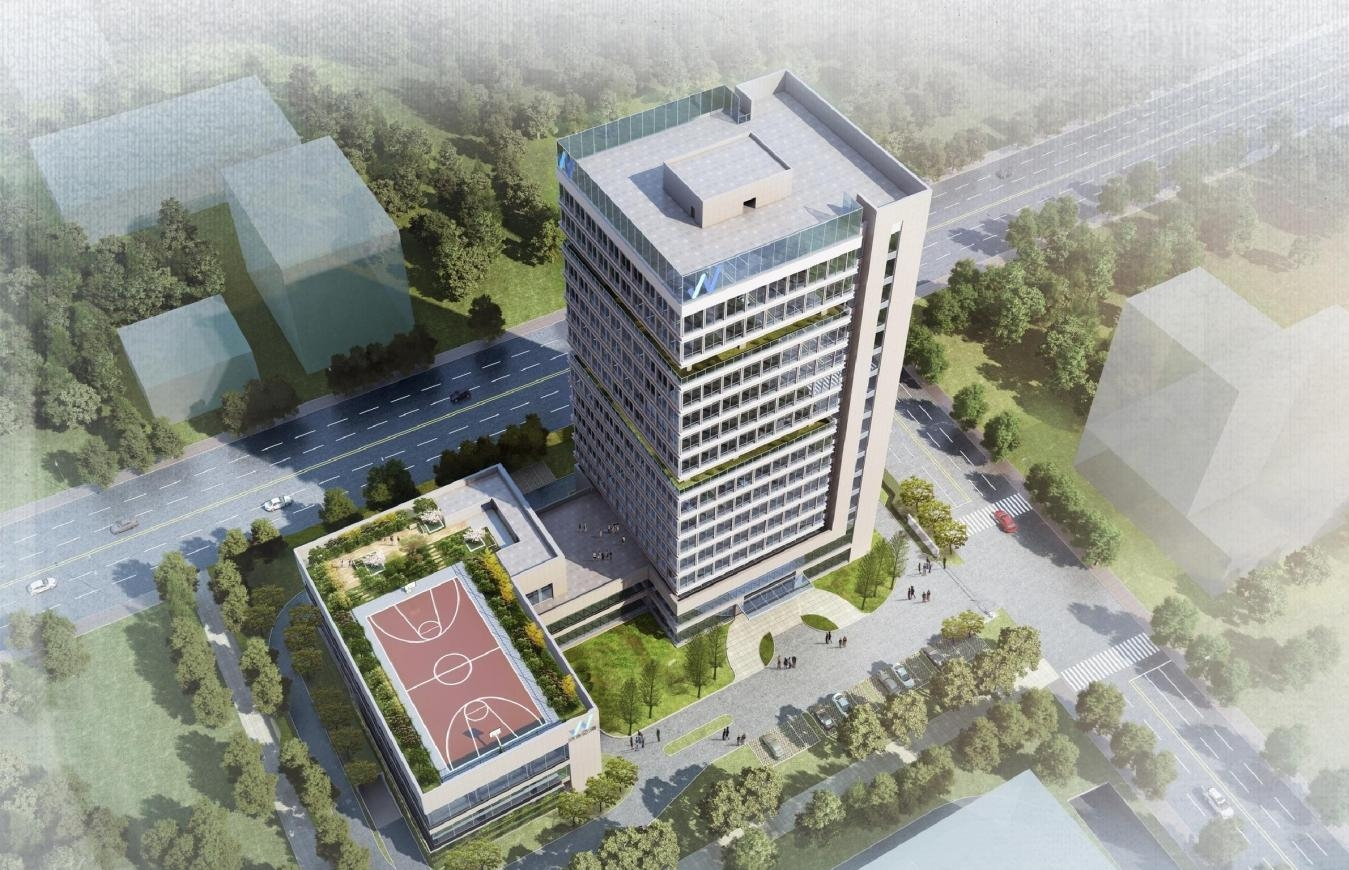 大樓總體布局充分考慮與周圍地塊的關系,半圍合的裙房,形成良好辦公入口景觀,同時打造城市沿街界面。