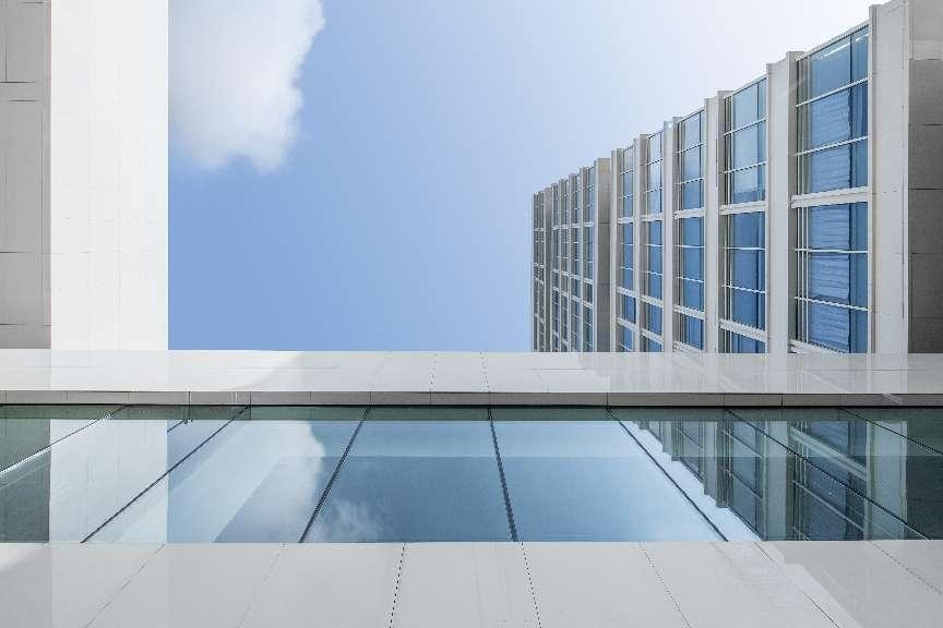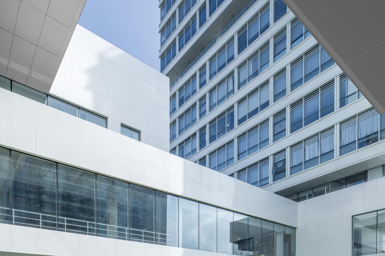 大樓整體以純白微晶石為立面,打造了素雅簡約的建筑風格。